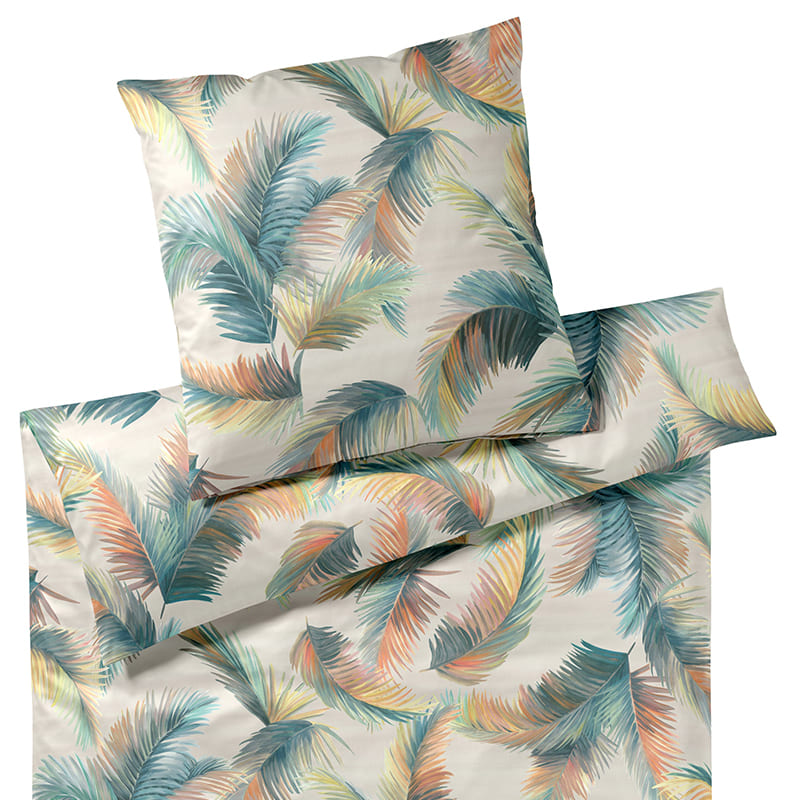Der Bambus-Baumwoll-Satin schimmert dezent und ist wunderbar anschmiegsam: Er hat eine glänzende Oberfläche und eine matte Unterseite. Die Mischung verbindet die besten Eigenschaften der Bestandteile von saugfähigem Bambus, als auch des weichen Griffs